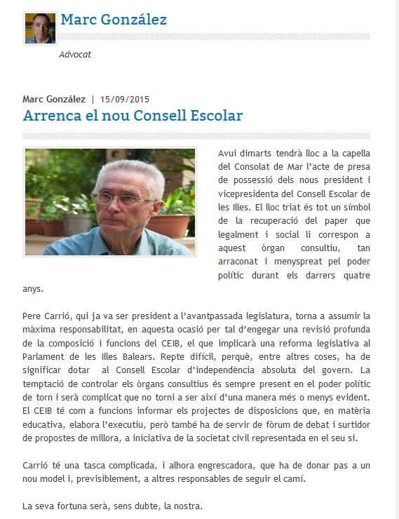 dels membres del Consell Escolar de les Illes Balears per a du endavant la
